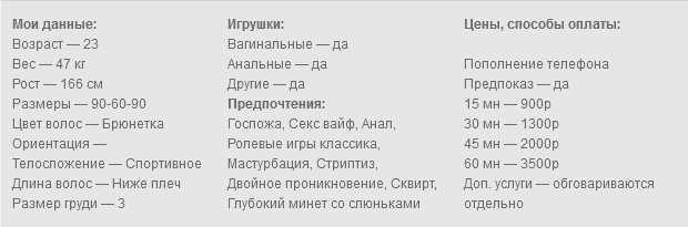 Я обожаю секс. Виртуальный, реальный и по телефону и перепискам… Ласки .Люблю делать минет. Обожаю ласки члена. Заходите поласкаю, пообщаюсь , пошалю. Классика и ролевые. Переписки с фото и с видео. Продажа фото и видеою, секс рассказы и истории из личной сексуальной жизни и любые фантазии. У меня очень эротические и извращенные фантазии, Люблю нежный секс и жесткий. Могу сделать оценку члена, и провести ласковый контроль. Роли Госпожи мне тоже подходят, я универсальна и опытна, если ищите настоящую госпожу и секс вайф. Мамочку и учительницу и тд…